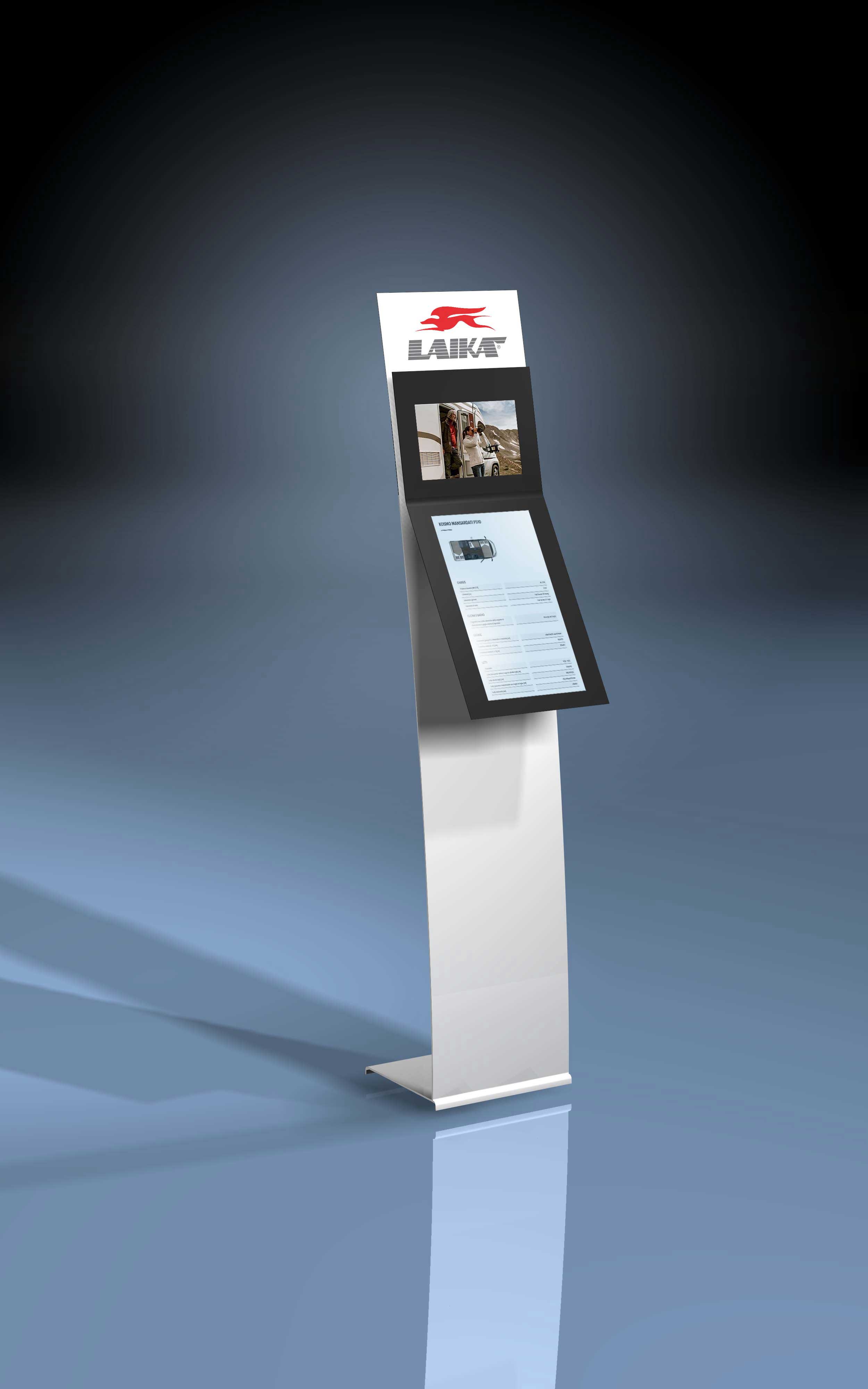 Una soluzione tecnologica e innovativa per la comunicazione multimediale concepita per gli eventi fieristici. Un totem elegante e solido, realizzato in metallo: un espositore durevole, utilizzabile per più manifestazioni. Nella realtà di oggi, con una facilitazione sempre maggiore a reperire informazioni sul web, per essere competitivi occorre sfruttare l'innovazione tecnologica per informare, sorprendere ed emozionare: secondo le nuove dinamiche di acquisto l’utente integra, al tradizionale acquisto in negozio, una preventiva ricerca di informazioni; questo totem si dimostra ideale per supportare la presentazione e la vendita di prodotti integrando strutture comunicative tradizionali con messaggi audio e video.